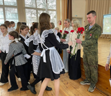 На линейке присутствовали заместитель начальника УО С. А. Фадеева, участники Специальной военной операции Смышляев М. В., Теплов А. С., социальный координатор филиала государственного фонда Защитники Отечества Вичкуткина О. А